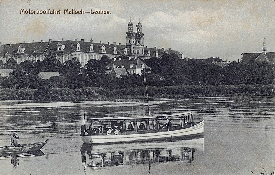 (KP) Łódź motorowa kursująca na trasie Lubiąż – Malczyce – obieg 1911r.