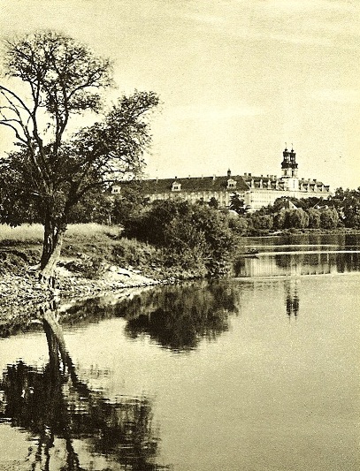 (KP) Widok na klasztor od strony Odry – obieg 1938r.